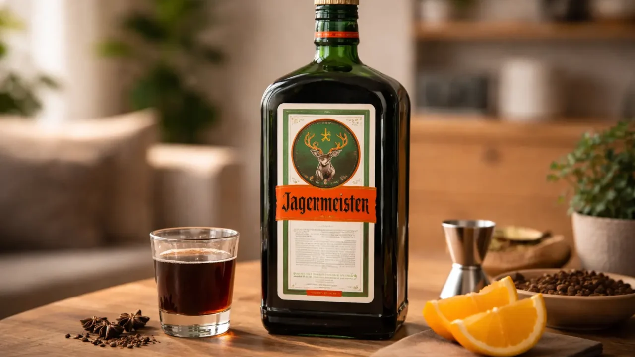 Jagermeister é um licor alemão feito com ervas e especiarias, resultando em um sabor intenso e levemente amargo. Ele passa por um processo de infusão e envelhecimento, o que o torna único