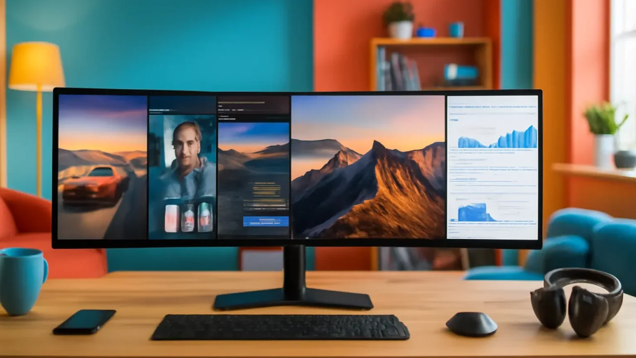 As vantagens incluem uma tela mais ampla para multitarefas, melhor imersão em jogos e a possibilidade de substituir dois monitores por um só.